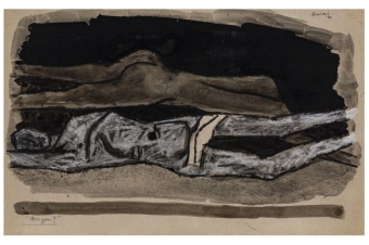 HP: At the time, the UK was full of football billboards of Wayne Rooney bare-chested with the red St. George’s cross across his body, his chest. For a brown person in the UK, that flag was terrifying. At the time, I was a tabla student as well, learning about cyclical rhythms, verbal bols and using materials from prayer ceremonies that I’d grown up with, I guess. The video wrestles with my relationship to Englishness and that symbolism, marking and wiping the flag on and off my body, showing that uneasy relationship.