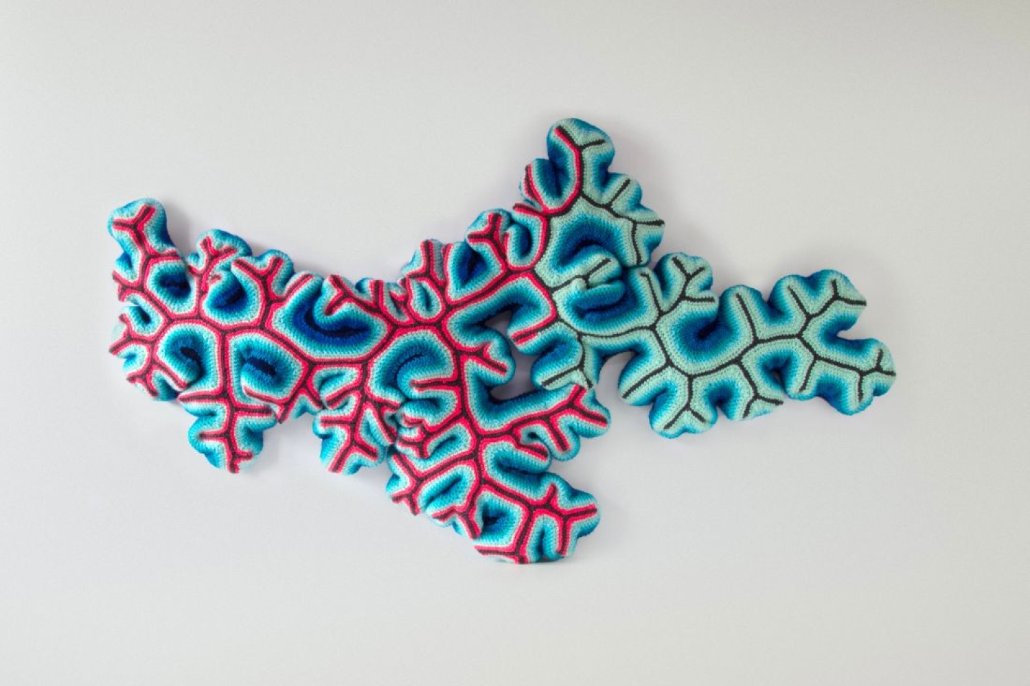 liactuallee (they/them) constructs vibrant, amoebic landscapes through soft sculptures that push conventional boundaries. Their crocheted works pulse with bright colors and organic forms, reminiscent of overlooked ecologies, allowing the viewer to enter their world through their own sensory memories. The artist describes their visual translations as "tendencies to hyper-fixate on things I see in the world—they get stuck in my brain like a 'brain itch'—and through surrealist interpretations, these phenomena become part of my imagined universe."