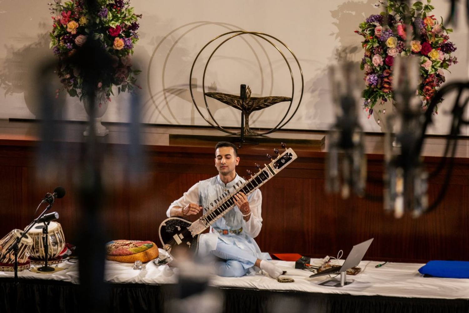 It is all impromptu like I don't plan on playing a specific note so it's always with the flow, whatever it defines honestly and also like leading a meditation is a very responsible task because everyone's eyes are closed and they are all connecting to their deep selves and you have to play the right notes, you can't play one note like super loud, it has to all be in tune, in the same feeling, emotion because anything that you do which is striking will snap people out of their meditation. It's a huge responsibility as it has to flow very nicely. I'm often in a lot of pressure when I'm initially playing the first 5 notes that how can I take people on a journey because it is like taking off the journey because once we're up then we're up. That's usually the challenging bit but thanks to my gurus and all my teachers that I've been taught how to have a good hold of the melody and the raga. You should always be under the raga and not like riding on top of it like can I play you rather than hey I'm going to play you. You can't be dominant on the raga; you have to be very humble and then the raga would invite you. That's usually my thought process and my creative process while leading a meditation.